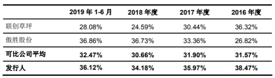 招股书显示,2016年至2019年上半年,共创草坪的人造草坪产品毛利率为38.47%、35.97%、34.18%和36.12%,呈现波动趋势。