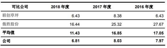 公司2016年至2019年的应收账款周转率分别为7.97次、8.03次和6.81次,大体上呈现出波动的趋势。同行可比公司的应收账款周转率均值分别为17.05次、16.85次和11.43次,共创草坪的应收账款周转率与联创草坪较为接近,但明显低于傲胜股份。