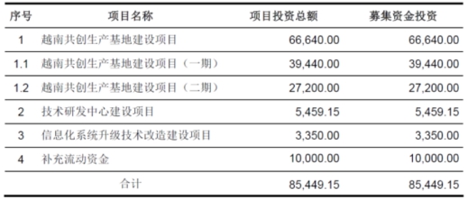 本次上市,共创草坪拟融资8.54亿元,其中6.66亿元用于越南共创生产基地建设项目,约占本次融资额的77.99%。