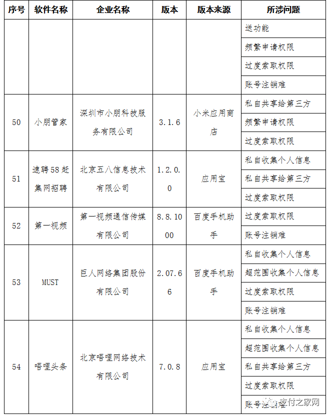 支付之家网(ZFZJ.CN)据工信部网站近日公布的《关于侵害用户权益行为的APP通报(2020年第三批)》显示,交通银行信用卡旗下买单吧、微众银行旗下小鹅花钱、天弘基金、还呗等58款APP存在侵害用户权益行为。
