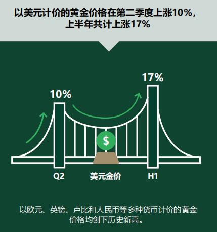 创纪录的流入量也令金价得到了提振:美元金价上半年上涨了17%,而多数以其他货币计价的黄金价格也升至历史新高。