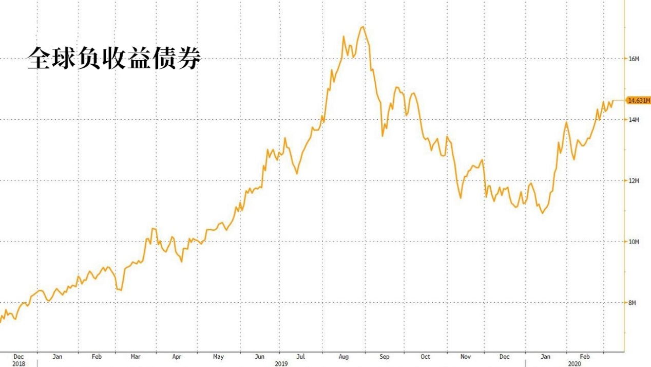 与此同时,全球负收益率债务的规模已从今年1月的11万亿美元飙升至14.6万亿美元,并迅速逼近一年前创下的17万亿美元的历史高点。