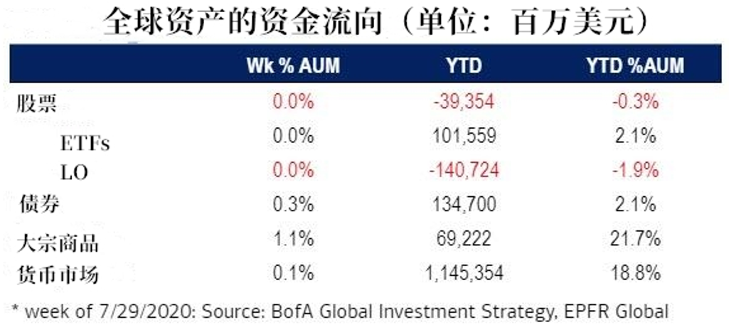 另一个问题是,尽管美联储曾试图吸引资金流向股市,但大部分新资金都流入了债券市场,而不是股票市场。事实上,年初至今的股本流出规模达390亿美元,而流入债券和大宗商品的资金超过2000亿美元,流入现金(货币基金市场)的资金规模则高达1.145万亿美元。