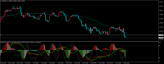 4H:美加昨日小幅反弹后继续承压下行,今日开盘后继续走低,目前从4H来看,短期均线发散向下,MACD零轴下方死叉运行,日内上方关注1.3330-40一线阻力,短线震荡偏空。