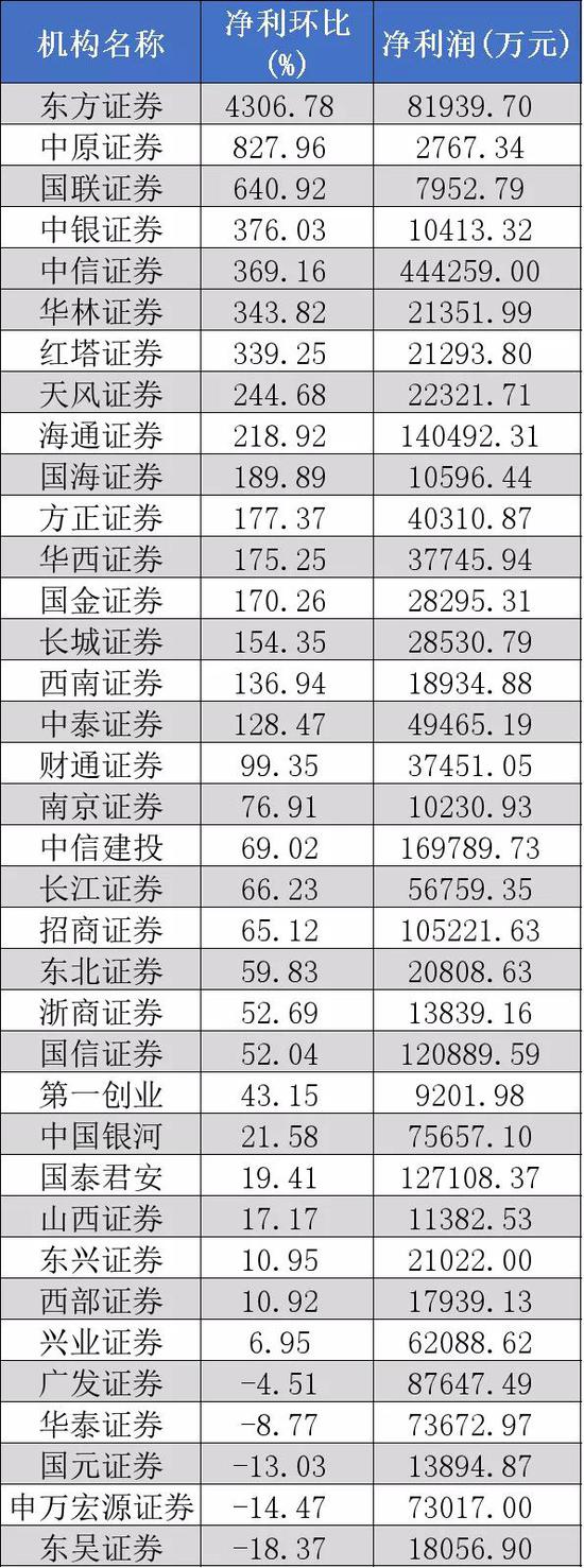 其中有32家上市券商净利润环比飘红,实现业绩高增长。
