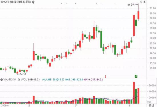 8月6日,同仁堂在大宗交易平台又出现一笔成交,成交量2687.36万股,成交金额7.45亿元,成交价为每股27.72元,相对当日收盘价折价5.00%。该笔交易的买方营业部为国信证券深圳振华路证券营业部,卖方营业部为机构专用。