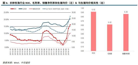 农林牧渔行业的ROE、毛利率和销售净利率与生猪年均价的相关性分别为0.92、0.62和0.86。