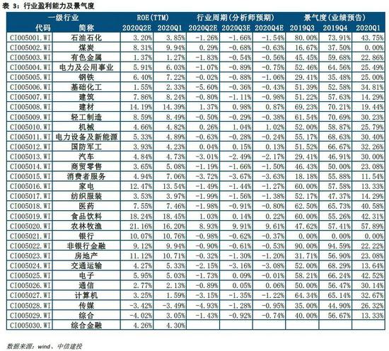 基本面:预测上市公司的ROE于2020Q2见底回升