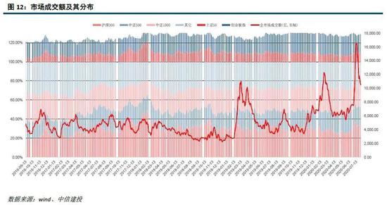 市场情绪:2020年Q1市场成交额相较于2019Q1更高,2020年3月市场成交额开始从高位下降,7月成交额始终维持在万亿水平以上。