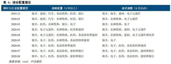 我们挑选处于中周期产能扩张阶段的未来两年价值正增长、行业周期上行和景气度上行的行业,电子和医药;和处于中周期产能收缩且具备高ROE和良好格局的行业,食品饮料和建材;则对未来比较看好的行业有:电子、医药、食品饮料和建材,作为长期战略配置的行业。