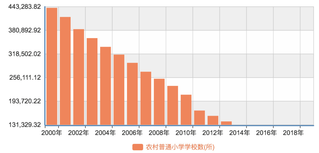 从2000年到2013年,农村普通小学的数量从440284所降到140328所,缩水近七成的数据背后,是平均每年就有2万所村小消失的现实。