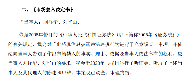 同时,8月6日晚间,千山退信披违法违规一案的处罚结果也浮出水面。千山退发布了题为《关于收到中国证监会<行政处罚决定书>及<市场禁入决定书>的公告》。