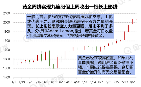 尽管从上周五开始,金银便出现了一些颓势。黄金周线上周收出一根长上影线,回调信号便已经出现。