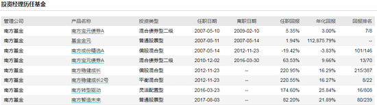 数据来源:WIND 截止日期:2020-08-12历任管理6只基金产品,除2007年5月14至2012年11月23日管理的南方成份精选A,任期回报为-19.42%外,其他5产品,任职期间均获得正收益。其中自2012年11月23日至今管理的南方稳健成长,任职回报220.95%,年化回报16.29%,回报排名215/387;南方转型驱动,自2016年3月23日管理至今,任职回报174.60%,年化回报25.84%,回报排名16/808。1年风险分析,南方稳健成长下行风险9.58%,风险度低;南方转型驱动下行风险11.32%,风险度高。