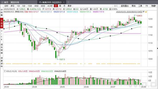 7月焦煤弱势运行:随着下游焦化产开工率的持续回升,目前已回升至高位水平,比去年同期略低的位置,下游焦化行业在高利润的驱使下,开工率大幅回升,并维持高位;供应方面,同时国内供应快速释放,炼焦煤现货呈现走势较弱;预计焦煤价格现货价格有望止跌企稳。