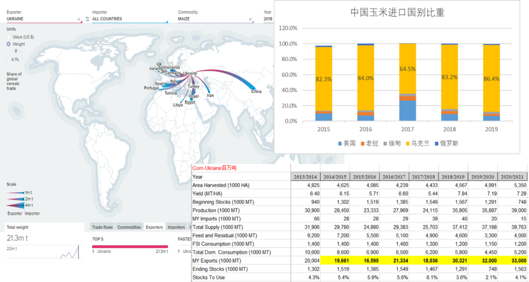 图12 中国进口最大来源国乌克兰玉米平衡表及其出口情况