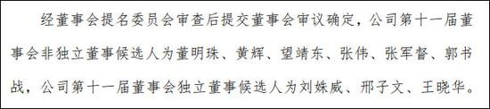 非独立董事名单中,除董明珠和已经辞职的望靖东,还有格力电器现任执行总裁黄辉、总裁助理张伟、浙江盛世欣兴格力贸易有限公司总经理张军督、河南盛世欣兴格力贸易有限公司总经理郭书战。3名独立董事则是知名学者刘姝威、西安交通大学教授邢子文和广东广信君达律师事务所主任王晓华。