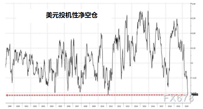 截至上周,投机交易者对于美元净卖空的期货合约数量创下了上世纪90年代末以来的最高纪录水平。