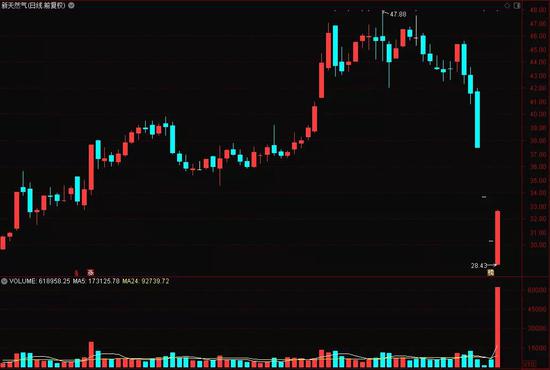 无独有偶,这样的股价走势也曾出现在昨日《每日经济新闻》报道的新天然气上,只不过在经历同样盘中陡然闪崩跌停,连续两个一字跌停后,今日新天然气就放出历史天量,大举反弹。