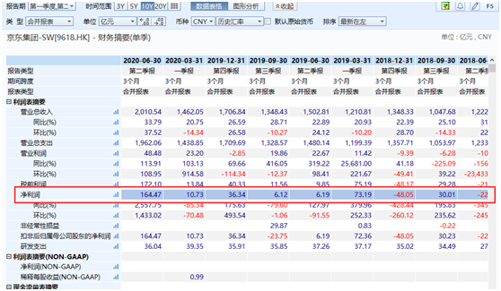 京东第二季度单季净利润高达164亿元人民币,创下该公司历史上单季最高盈利纪录,较去年同期暴增超过25倍!