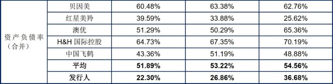 2019年底,美庐股份的资产负债率仅为21.00%,同行业中,H&H国际控股资产负债率高达64.73%,贝因美也达到60.48%。