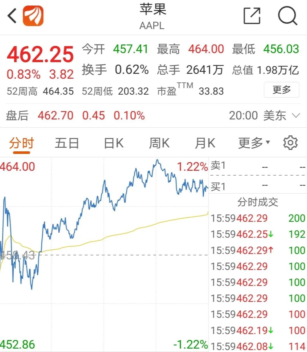 北京时间8月19日,苹果公司股价收于462.25美元,市值1.98万亿美元,距离2万亿美元大关只差约1%。标普道琼斯和彭博的数据显示,目前苹果在标普500指数中的权重占比达到6.5%,超过了IBM公司在35年前创下的6.4%的纪录。