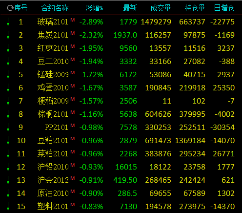 热点栏目8月21日,国内期市早盘多数下跌,能化品涨跌互现,燃油涨逾4%,纯碱、沥青涨逾2%,玻璃跌近3%,原油跌近1%;农产品多数下跌,红枣、豆二跌近2%,鸡蛋、棕榈油跌逾1%;黑色系中,焦煤涨近1%,焦炭跌逾2%。