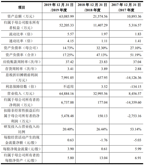 2017年至2019年各期末,恒玄科技的资产负债率分别为51.19%、47.13%和17.25%,流动比率分别为1.83、1.97、5.57,速动比率分别为1.41、1.11、4.15。