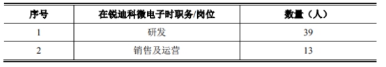 目前恒玄科技的员工中,曾在锐迪科微电子任职的员工共计52人,其中销售及运营人员13人,研发人员共39人,占恒玄科技总研发人员的比例为21.91%。