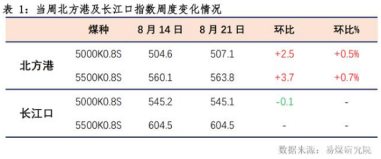 对于后市,易煤分析师认为:“短期市场,依然是终端去库与部分产地限产限票供应减量为主要矛盾。8月底到9月上旬,水电还能持续,而随着气温下降,用电量亦有下降,预计用电量降幅将大于供电降幅,9月上旬煤管票放开后,北港价格压力增加。”