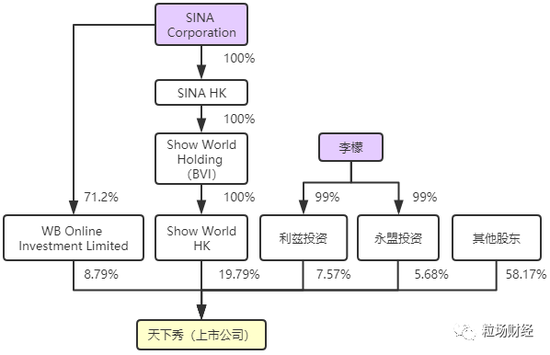 天下秀为新浪集团与李檬共同控制,2017年12月,新浪集团(Sina Corporation)和李檬签署了《一致行动协议》。