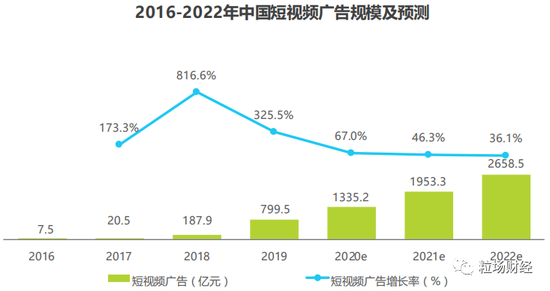 艾瑞咨询数据显示,2019年我国短视频广告市场规模为799.5亿元,首次超过社交广告市场规模。预计2020-2022年,短视频广告占互联网广告比例持续增长。