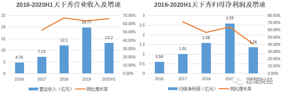 2020H1天下秀实现营收13.2亿元,同比增长66.1%;实现归母净利润1.36亿元,同比增长40.54%。从业绩增长的角度看,天下秀的业绩保持较高的增速。