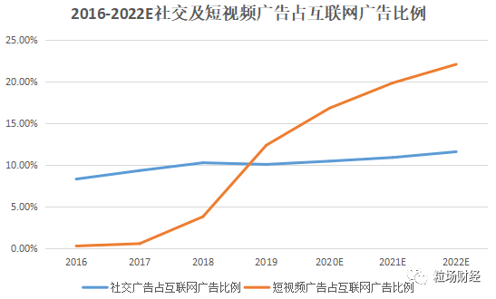 根据艾瑞咨询预测,2020-2022年,我国短视频广告市场规模增速分别为67%、46.3%和36.1%,社交广告市场规模增速分别为27.5%、29.2%和30.1%,短视频广告市场规模增速领跑网络广告行业,短视频广告市场规模占网络广告市场规模的比例将持续增长。