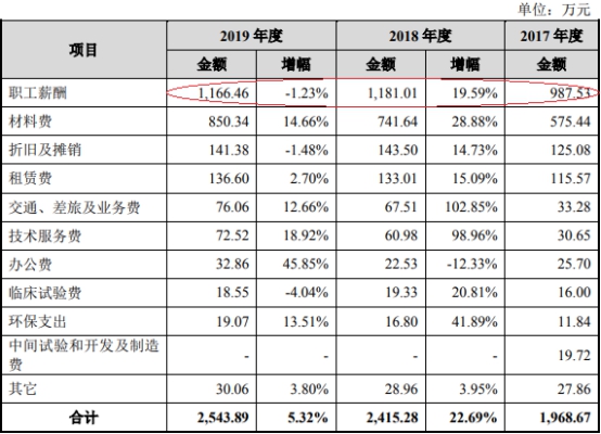 2016年至2019年,浩欧博研发投入分别为2334.85万元、1968.67万元、2415.28万元、2543.89万元;其中,职工薪酬分别为956.35万元、987.53万元、1181.01万元、1166.46万元。