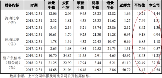 2016年至2019年,浩欧博可比上市公司流动比率均值分别为8.58倍、8.42倍、7.49倍、10.21倍;速动比率均值分别为7.54倍、7.46倍、6.85倍、9.18倍;资产负债率(母公司)均值分别为9.13%、18.47、22.49、18.43。