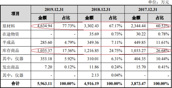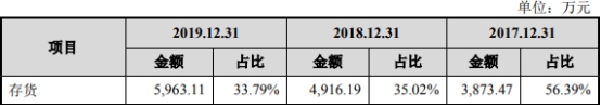 2016年至2019年,浩欧博存货账面价值分别为3001.29万元、3873.47万元、4916.19万元、5963.11万元;占流动资产比例分别为56.92%、56.39%、35.02%、33.79%。