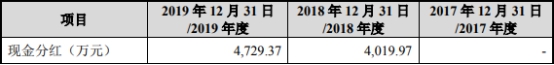 2018年、2019年,浩欧博共进行两次现金分红,分红金额分别为4019.97万元、4729.37万元,合计8749.34万元。