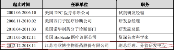 此外,李庆春辞职前,同时为公司核心技术人员,2012年12月至2018年11月任浩欧博副总经理、分管研发中心。