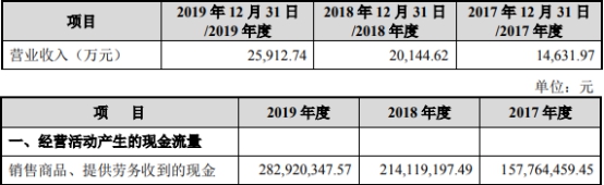 2016年至2019年,浩欧博营业收入分别为1.12亿元、1.46亿元、2.01亿元、2.59亿元;销售商品、提供劳务收到的现金分别为1.23亿元、1.58亿元、2.14亿元、2.83亿元。