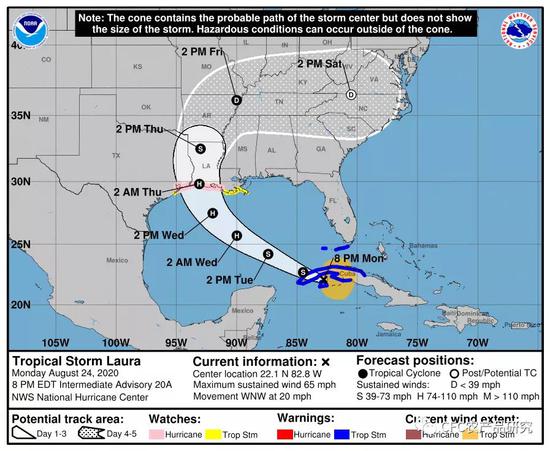 据美国国家飓风中心预测,当地时间8月24日,热带气旋“Laura”和“Marco”将同时在墨西哥湾形成飓风并登陆美国南方沿岸,而这种情况或将是美国150年来首次。