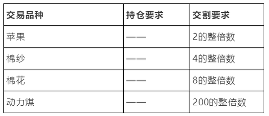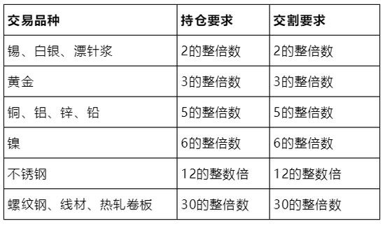 2. 持仓头寸需满足最小交割单位的整数倍;