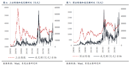 成交金额同样是判断泡沫的前瞻性指标。过往牛市中成交额往往领先行情高点1-4周。当成交额下滑之际,也将是击鼓传花结束之时。