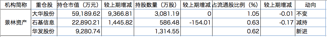 此外,景林资产还对石基信息(002153)小幅减持154.01万股。