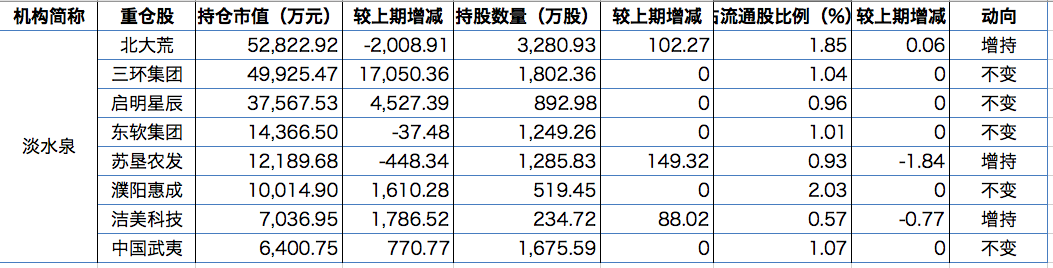淡水泉2020年中报持股情况