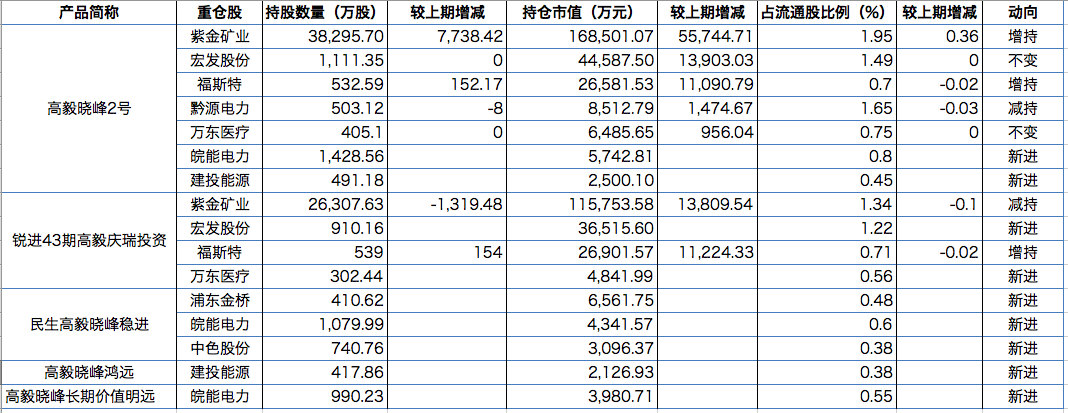 高毅资产:冯柳重仓游戏股,邓晓峰偏爱紫金矿业(601899)