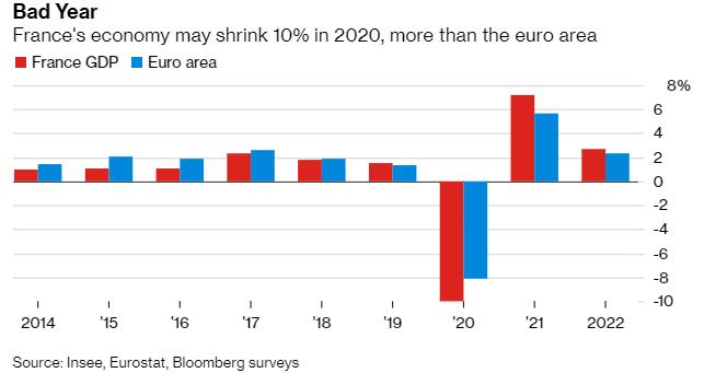 法国总统马克龙领导的政府指望靠这项计划使经济活动到2022年恢复危机前的水平,财政部预计今年经济将创下战后最严重衰退,萎缩幅度达到11%。