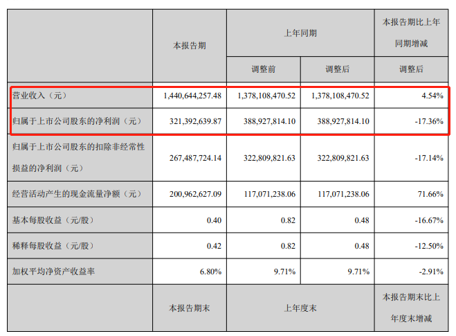 上半年净利润同比下降