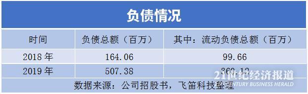 再来关注公司的负债情况,公司的负债总额从2018年的1.64亿上升至2019年的5.07亿,其中流动负债总额从2018年的9966万元上升至2019年的3.6亿元,公司的短期负债占比高,且增长较快。