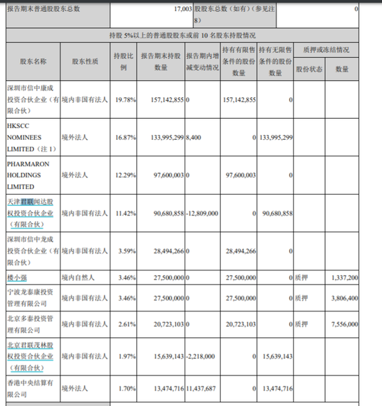 根据康龙化成中期报告,公司第一大机构股东为中信证券,旗下信中康成持股19.78%,信中龙城持股3.59%,合计持股23.37%。君联资本旗下君联闻达、君联茂林合计持股13.39%。君联闻达、君联茂林和 Wish Bloom均为联想控股旗下君联资本的旗下公司。